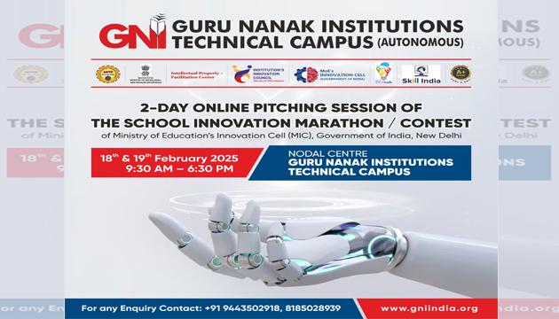 Guru Nanak Institutions Technical Campus (GNITC) proudly served as a premier host for the 2-Day Online Pitching Session of the School Innovation Contest, a flagship initiative of the Ministry of Education’s Innovation Cell (MIC) in collaboration with AICTE, New Delhi. Recognized as one of only 15 elite Nodal Centres across India, GNITC provided an exceptional platform for young visionaries to present their groundbreaking ideas.The event was organized on the 18th and 19th of February 2025.